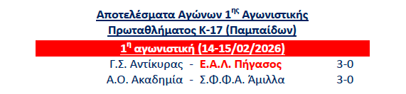 Κ17 (Παμπαίδων) ΓΣ Αντίκυρας – ΕΑΛ Πήγασος