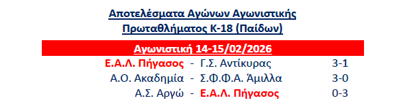 Κ18 (Παίδων) ΓΣ Αντίκυρας – ΕΑΛ Πήγασος