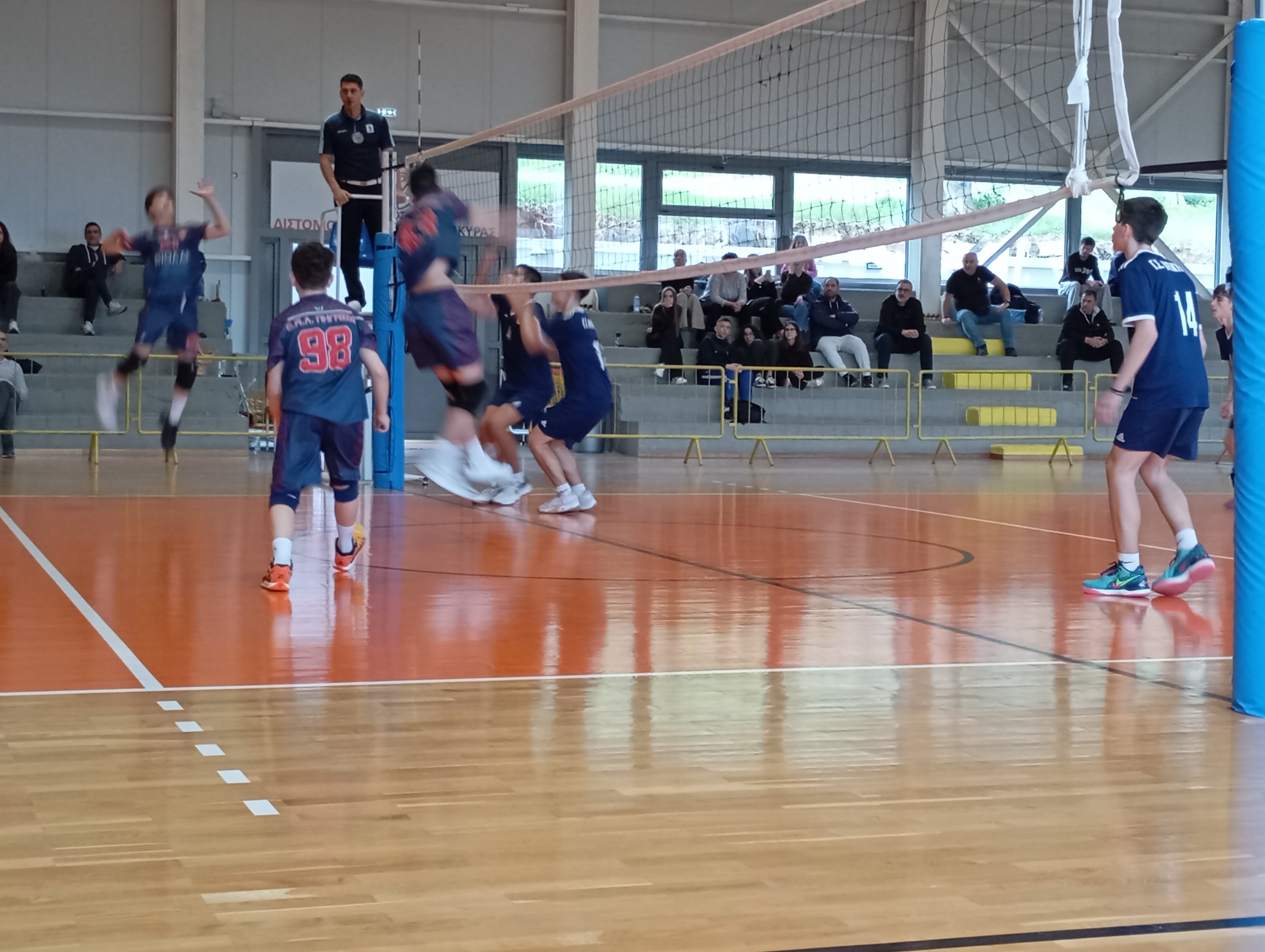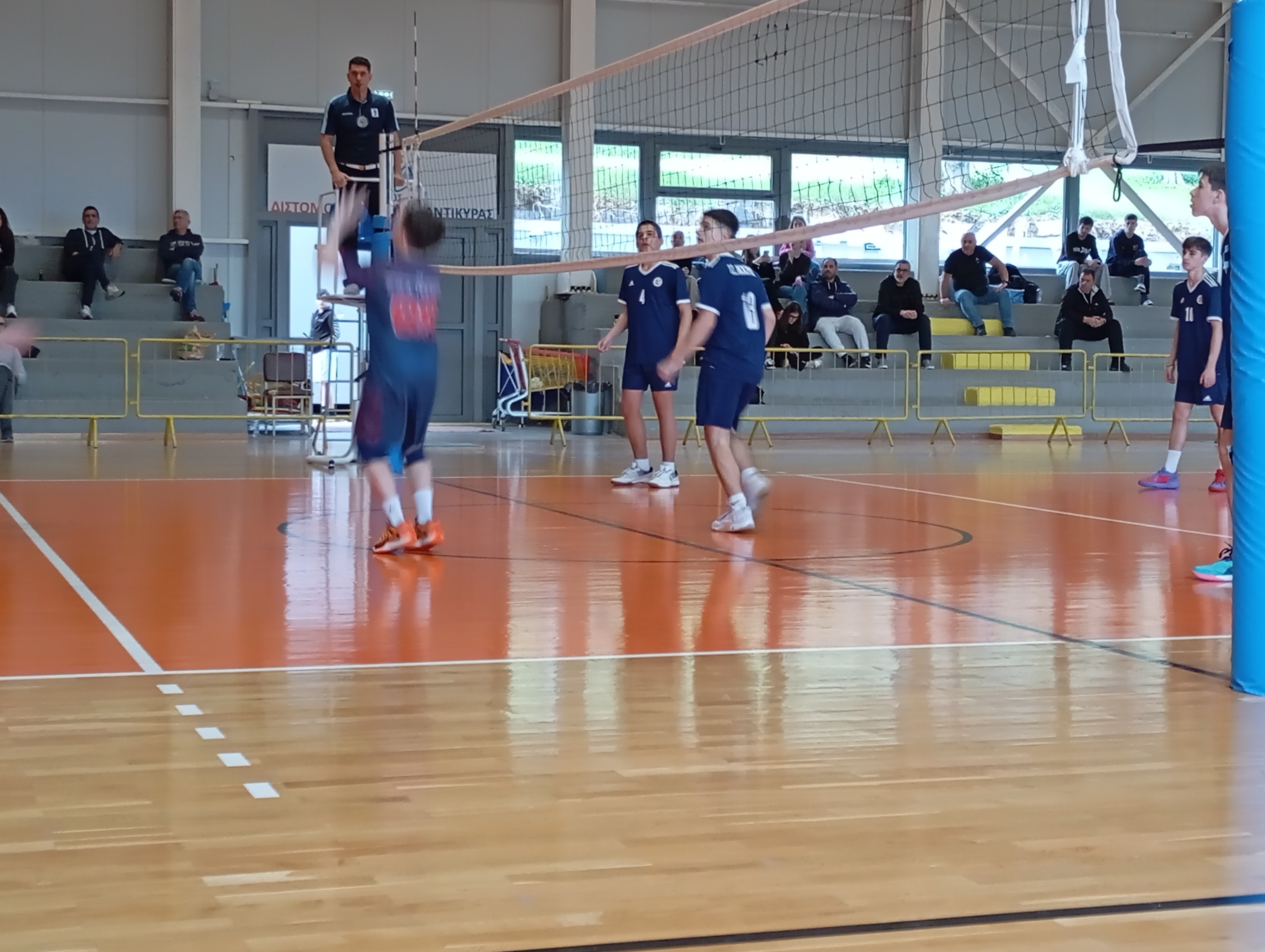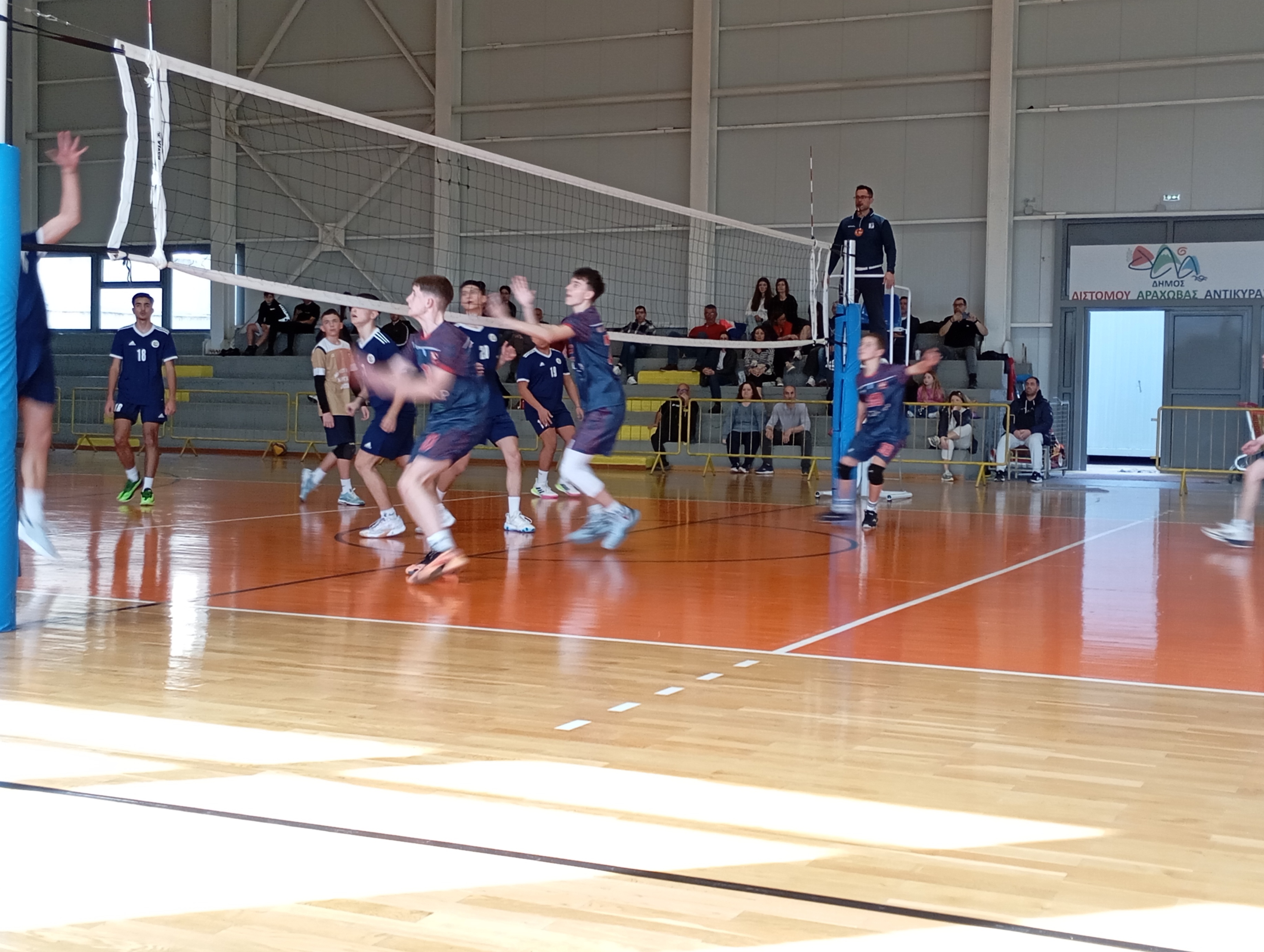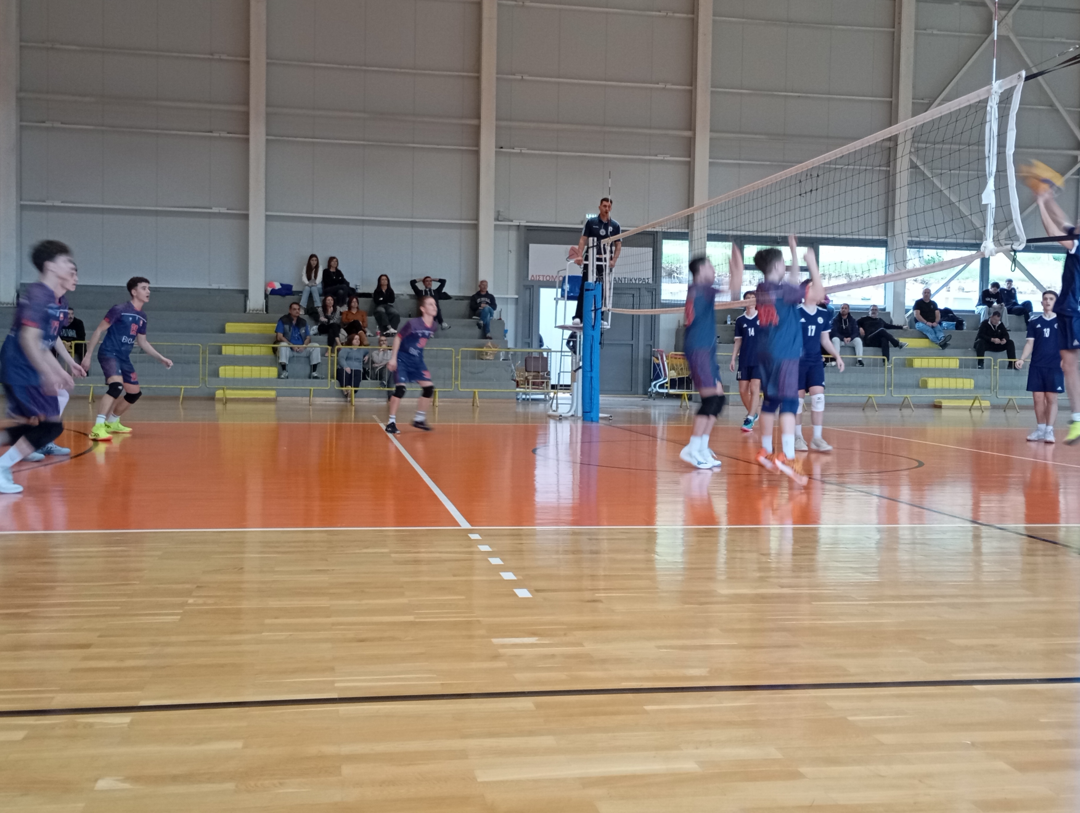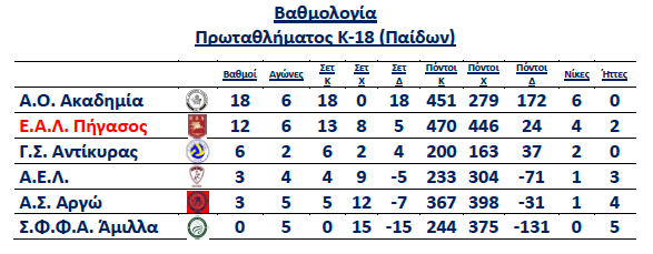 Οι νεαροί αθλητές της Κ18 (Παίδων) επηρεασμένοι από το πολύωρο ταξίδι δεν απέδωσαν σύμφωνα με τα αναμενόμενα και ιδιαίτερα στο πρώτο σετ όπου η υποδοχή ήταν σχεδόν ανύπαρκτη. Στο δεύτερο σετ οι φιλοξενούμενοι κατάφεραν να επικρατήσουν δείχνοντας σημάδια ανάκαμψης και ισοφάρισαν σε 1-1.