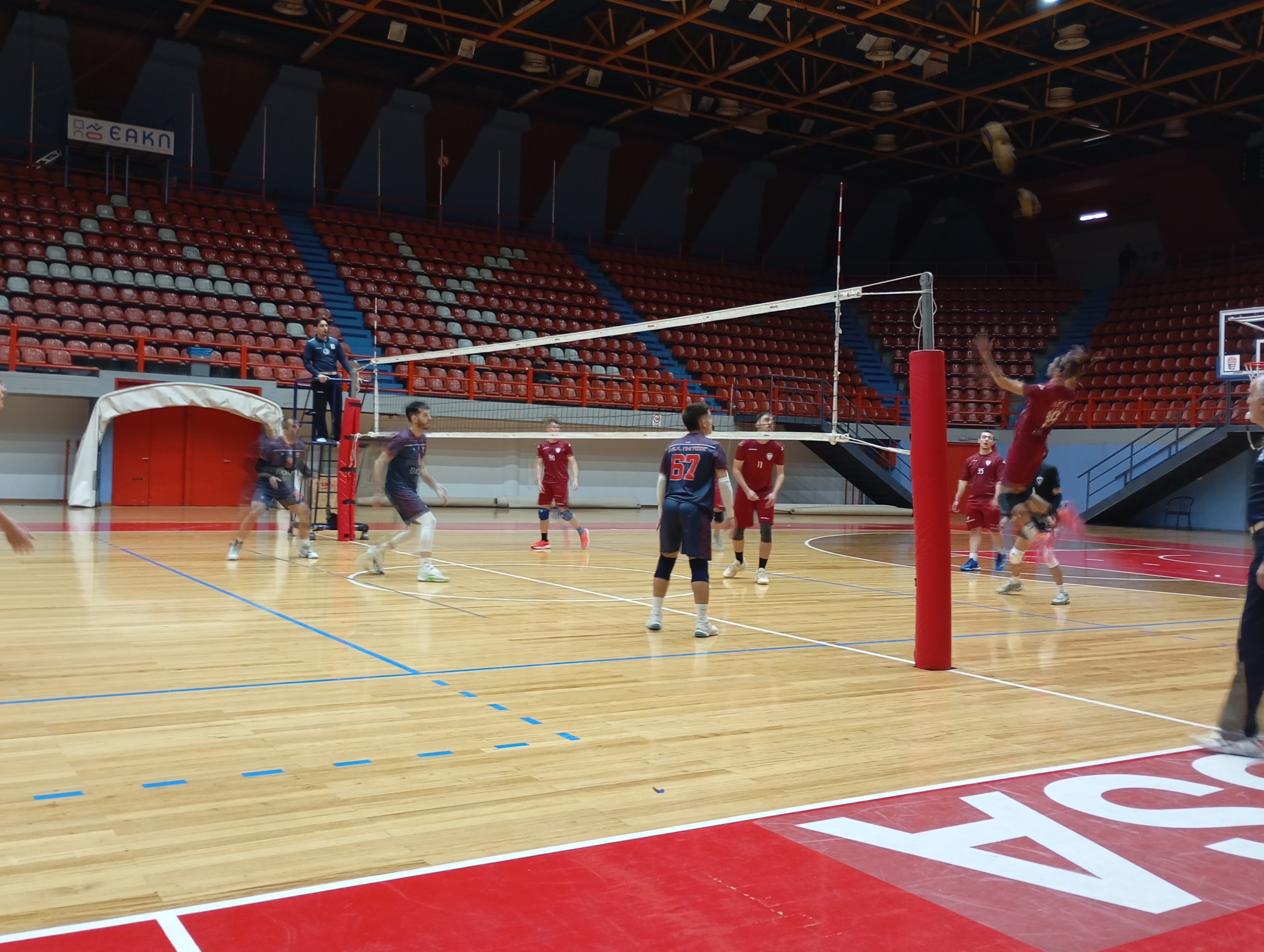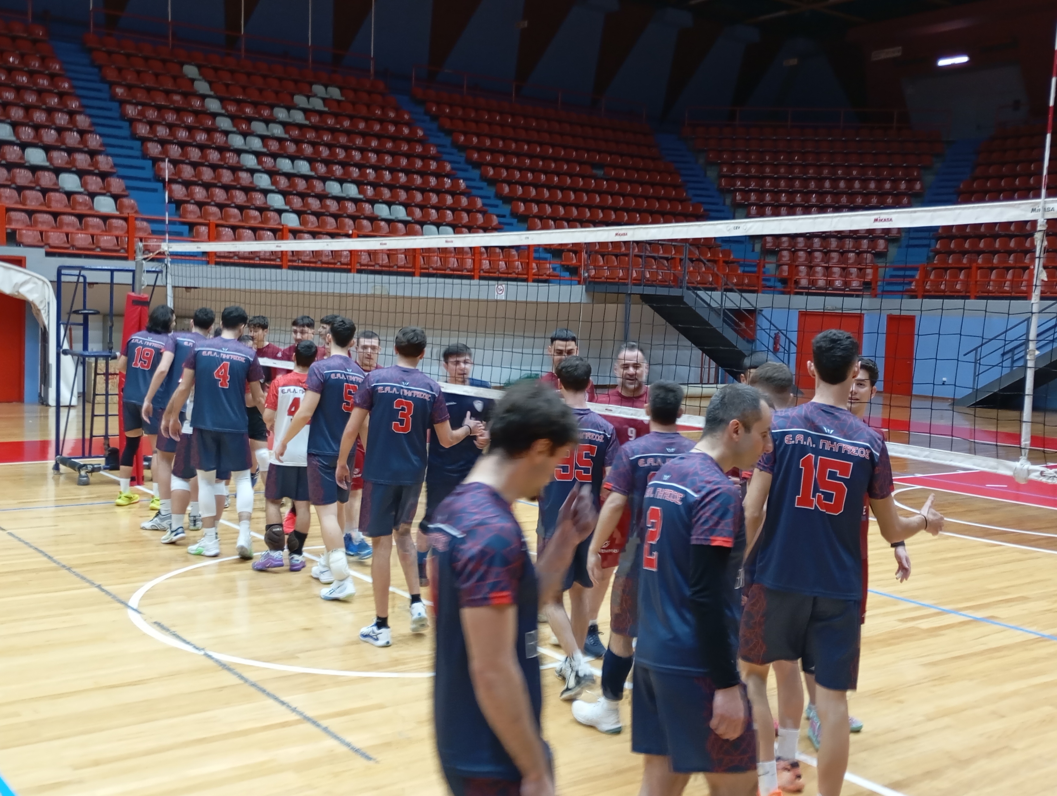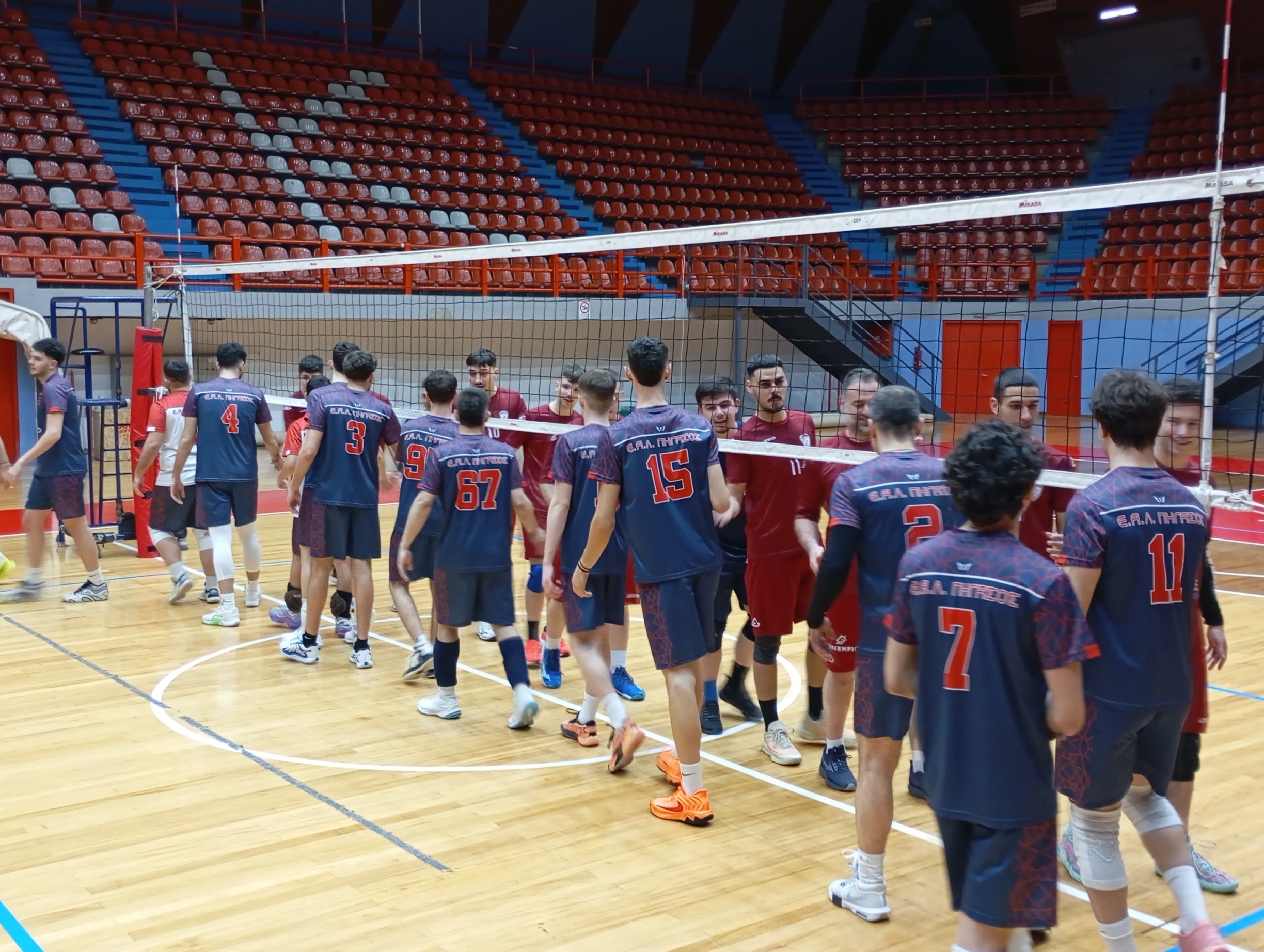 Η ανδρική ομάδα δεν αντιμετώπισε πρόβλημα απέναντι στους φιλοξενούμενους και επικράτησε εύκολα με 3-0 σετ. Δόθηκε η ευκαιρία στον προπονητή να δοκιμάσει σχήματα χρησιμοποιώντας όλους τους διαθέσιμους παίκτες.