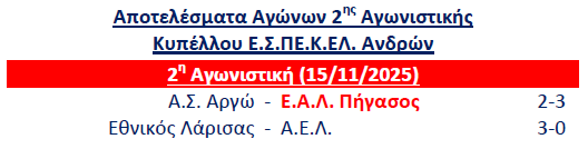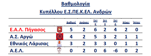 Συναρπαστικό παιχνίδι, γεμάτο ανατροπές, έγινε το Σάββατο το βράδι στο κλειστό της Αγριάς, ανάμεσα στη γηπεδούχο Αργώ Βόλου και την Ε.Α.Λ. Πήγασος για το θεσμό του κυπέλλου Ε.Σ.ΠΕ.Κ.ΕΛ.