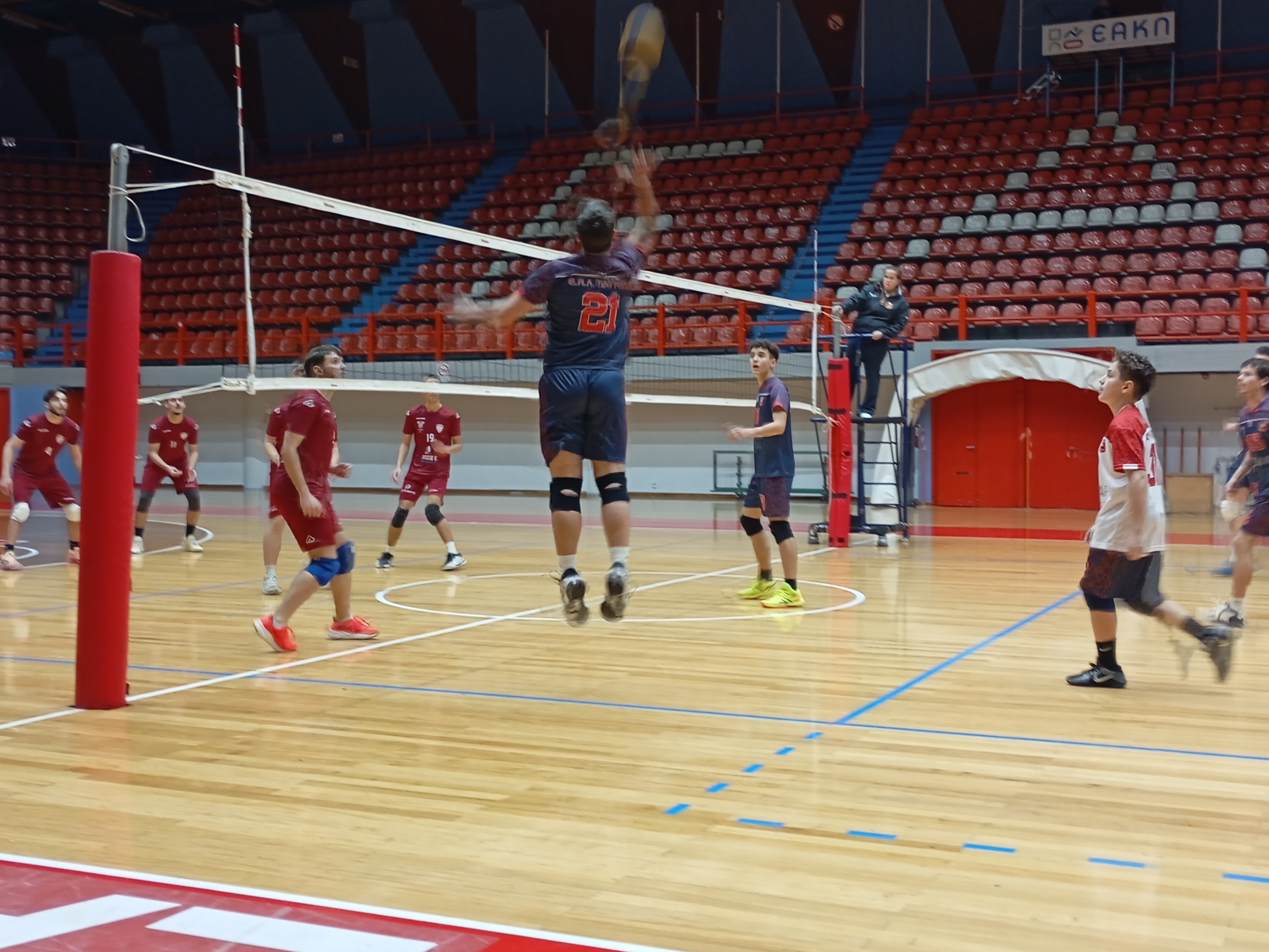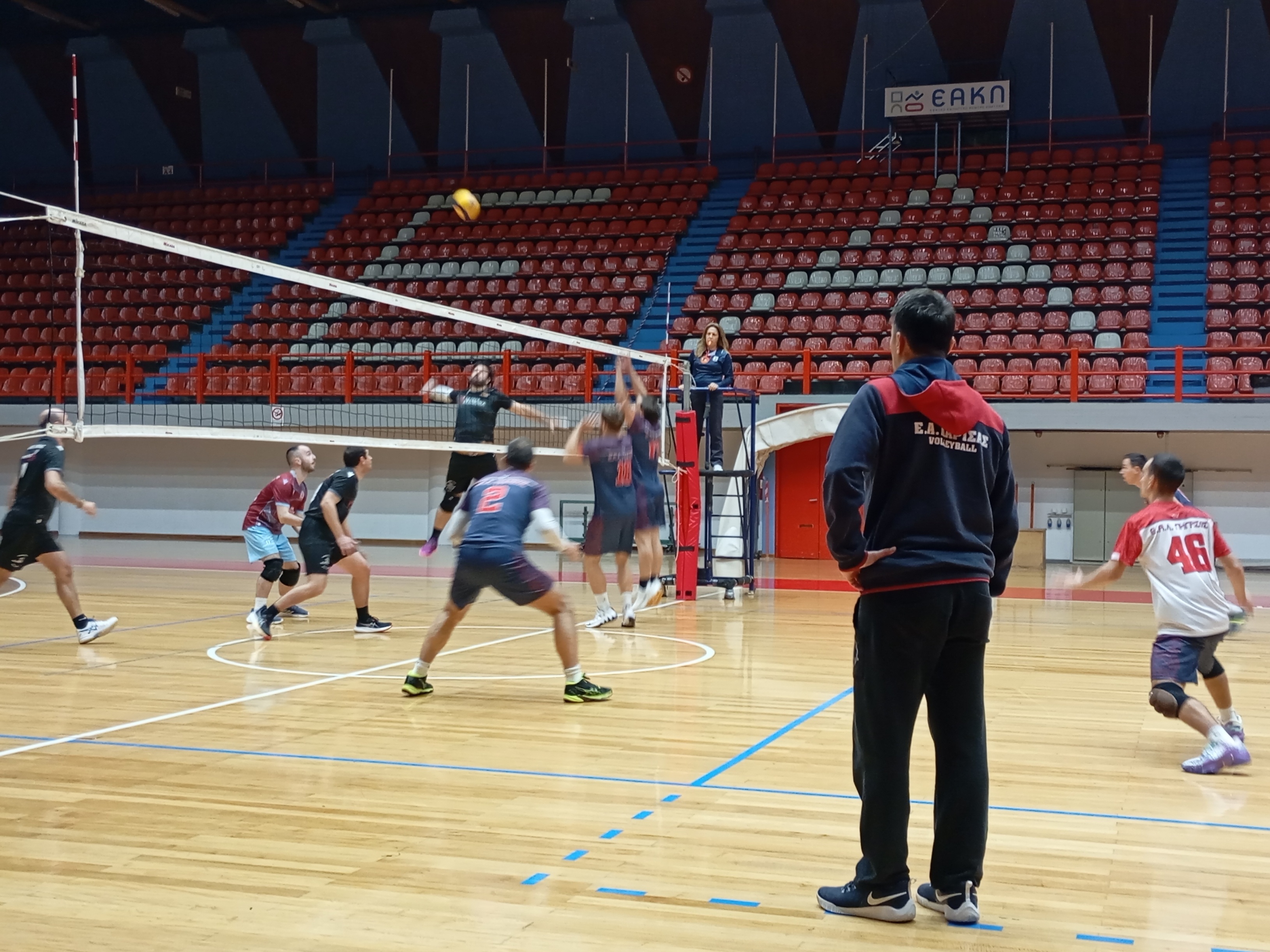 Αμέσως μετά τον αγώνα εφήβων ακολούθησε το παιχνίδι των ανδρών για το κύπελλο ΕΣΠΕΚΕΛ με τον Εθνικό Λάρισας. Οι γηπεδούχοι ξεκίνησαν δυνατά και πήραν προβάδισμα ως και τέσσερις πόντους. Στα μέσα του σετ όμως οι παίκτες της ΕΑΛ βελτίωσαν την απόδοση τους και από το 16-12 με ένα σερί έξι πόντων προηγήθηκαν 16-18 και σταδιακά αύξησαν τη διαφορά για την κατάκτηση του σετ.